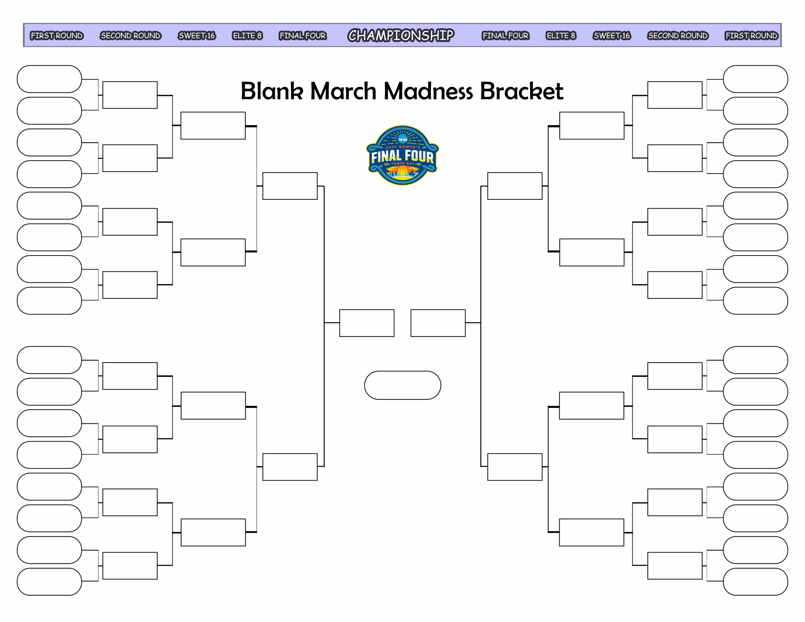 2025 March Madness Printable Bracket