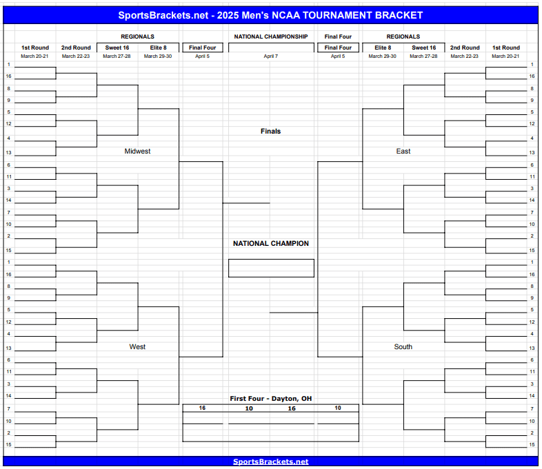 2025 Ncaa Tournament Bracket Printable Coloring Frank R Jester