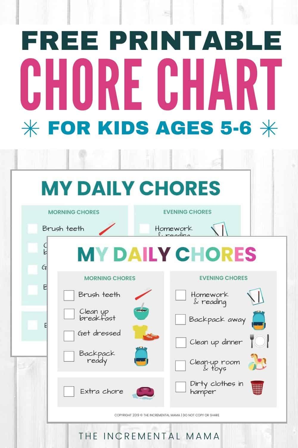 Free Printable Chore Chart For 5 6 Year Olds The Incremental Mama