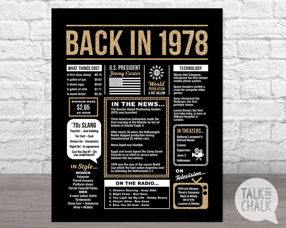 Back In 1978 Printable Poster 46th Birthday Printable Sign 1978