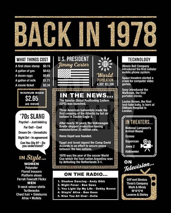 Back In 1978 PRINTABLE Newspaper Poster PRINTABLE Birthday Etsy