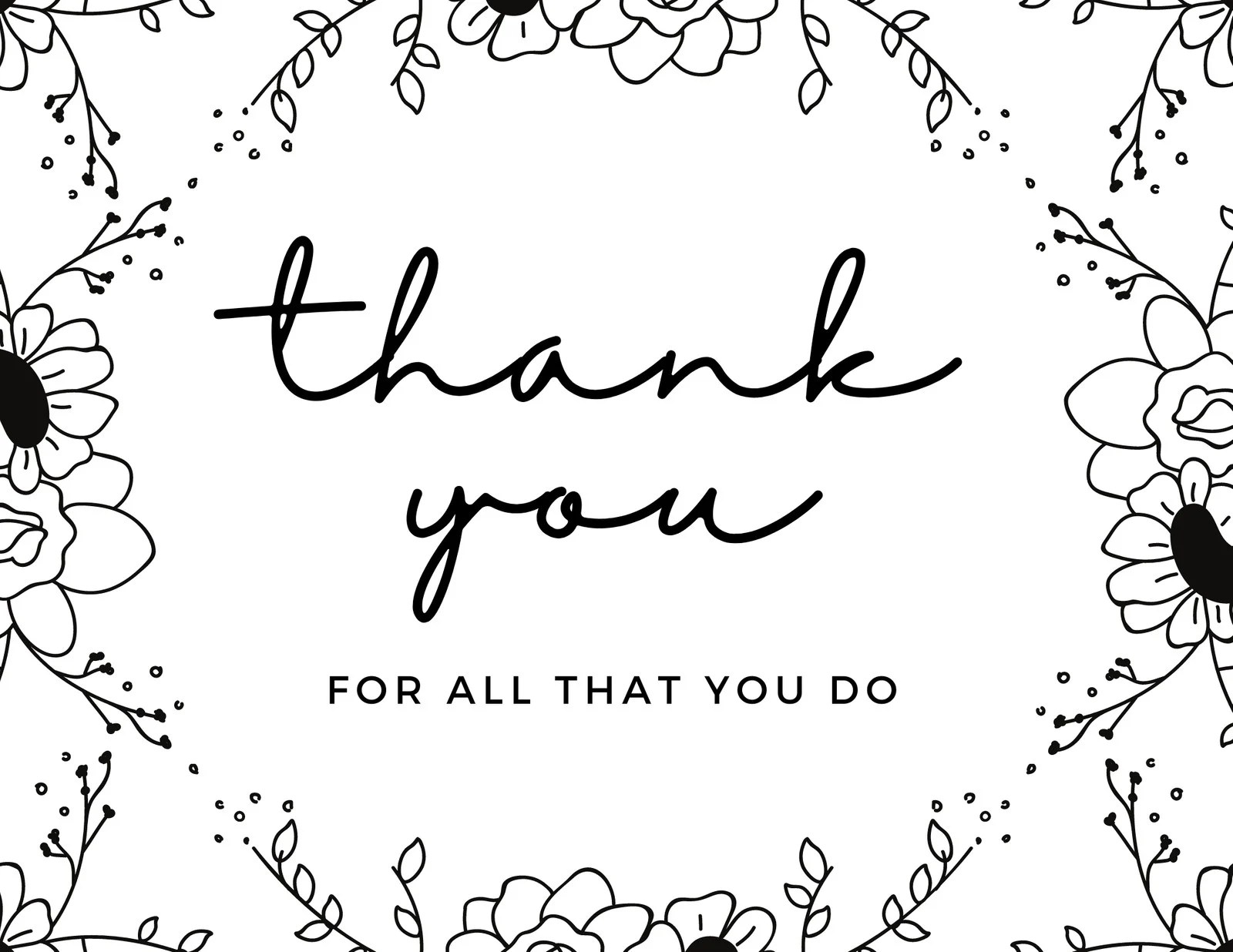 Printable Thank You Cards Black And White Printable Templates Protal