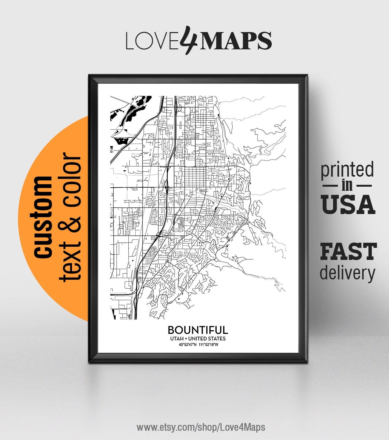 Bountiful Map Print Bountiful Map Poster Wall Art Ut City Etsy