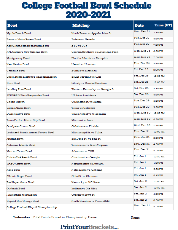 The Bowl Games Schedule 2025 Printable includes all the information you need to know about the upcoming games, including the date, time, and location of each matchup. You can easily print it out and hang it up on your fridge or bulletin board for quick reference.