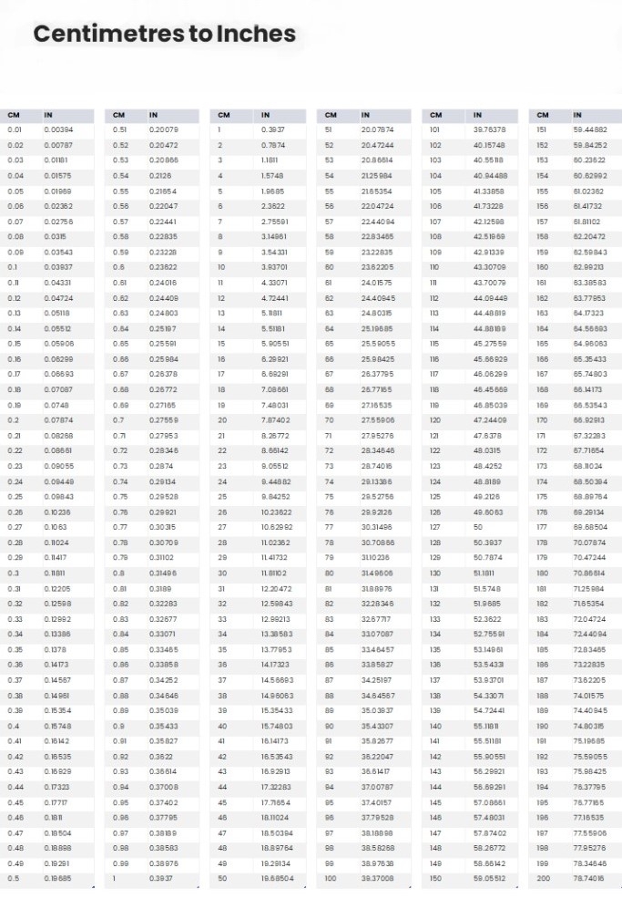 Are you tired of constantly having to convert centimeters to inches for your DIY projects or school assignments? Look no further! This article will provide you with a convenient Centimeters To Inches Chart Printable that you can use anytime, anywhere.