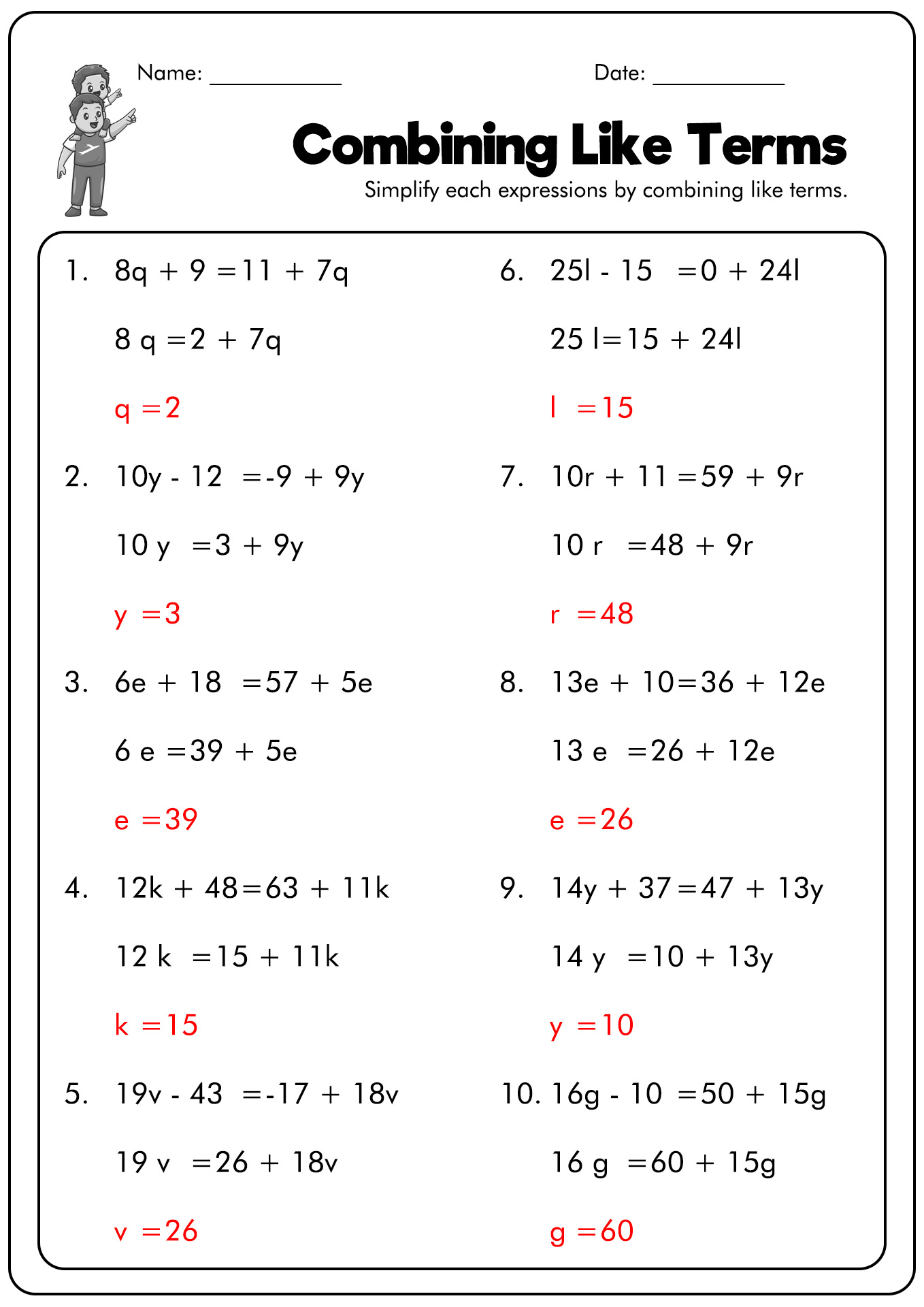 With these engaging worksheets, students can practice simplifying expressions and equations by combining like terms in a hands-on way. From simple problems to more complex challenges, there’s something for every learner.