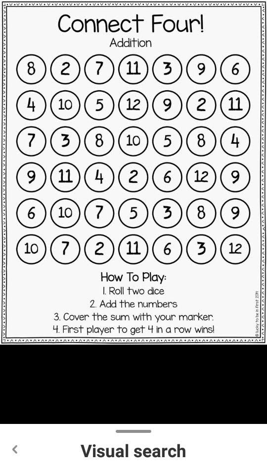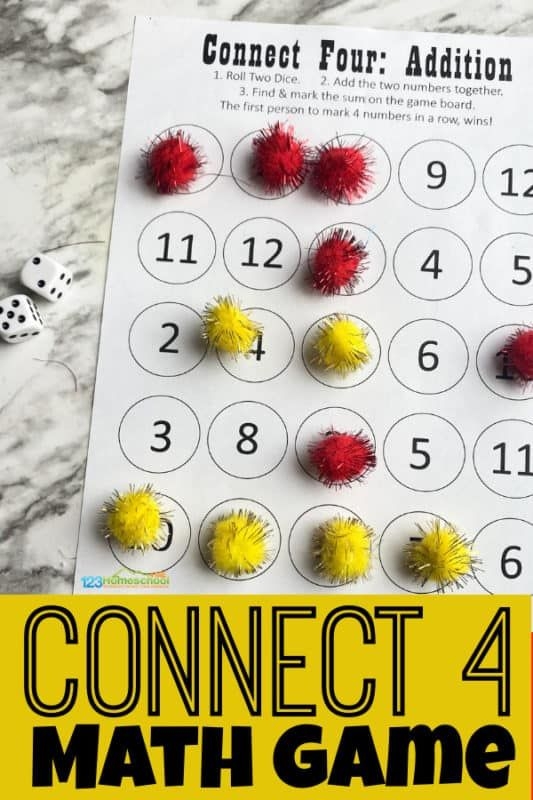 Connect Four Addition Free Printable Math Game Worksheets