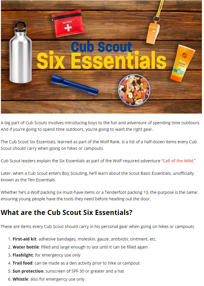 Cub Scout 6 Essentials Printable