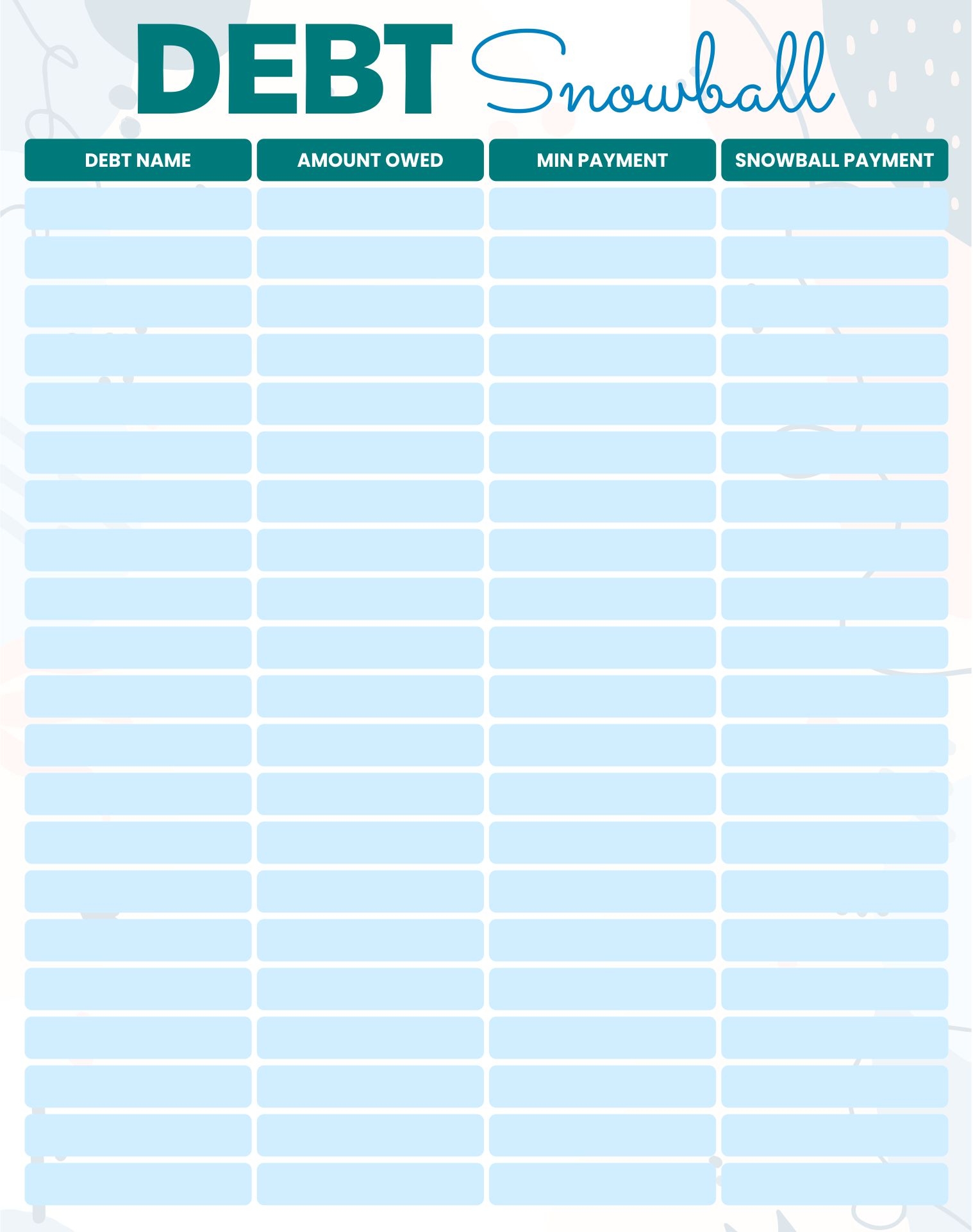 Dave Ramsey Snowball Sheet Printable Room Surf
