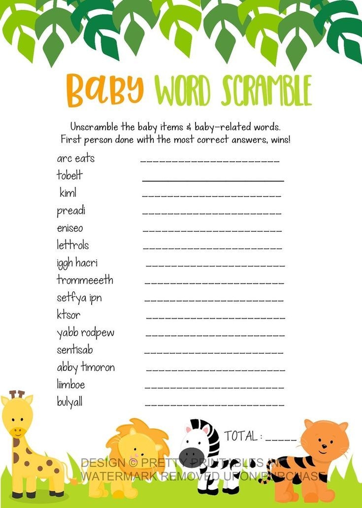 From “diaper” to “pacifier” to “stroller,” our word scramble features all the essential baby items. Your guests will love trying to figure out the scrambled words and race to finish first. It’s a great way to break the ice and keep the energy up throughout the event.