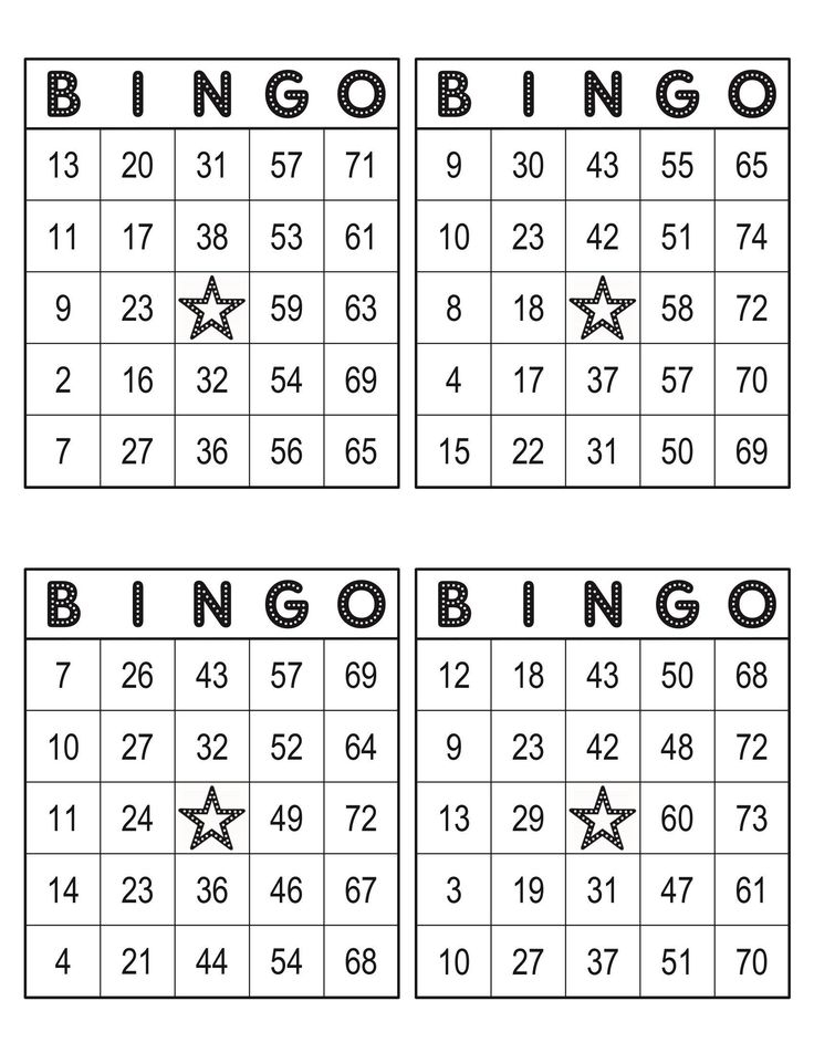 Free Printable Bingo Cards 4 Per Page