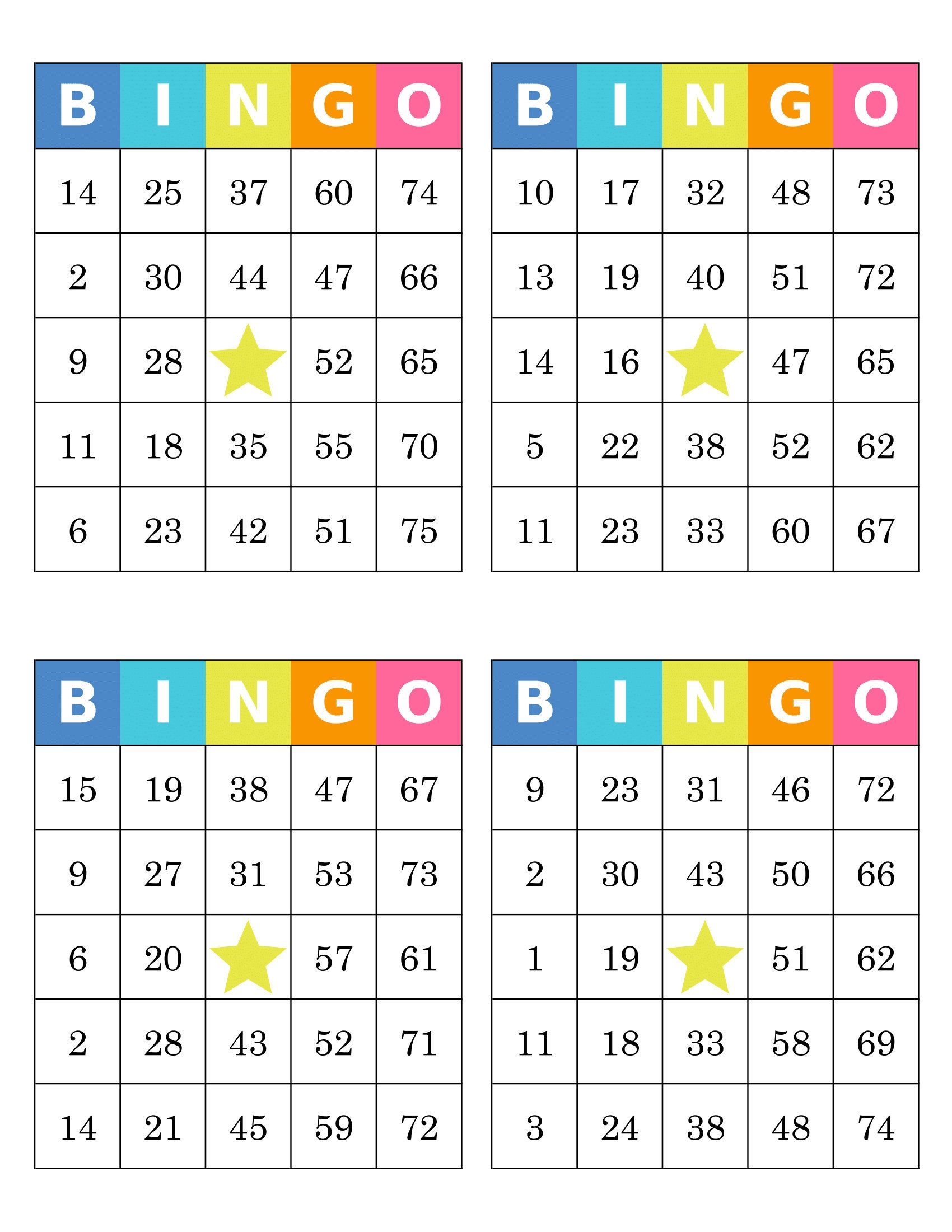 Printable Bingo Cards 4 Per Page