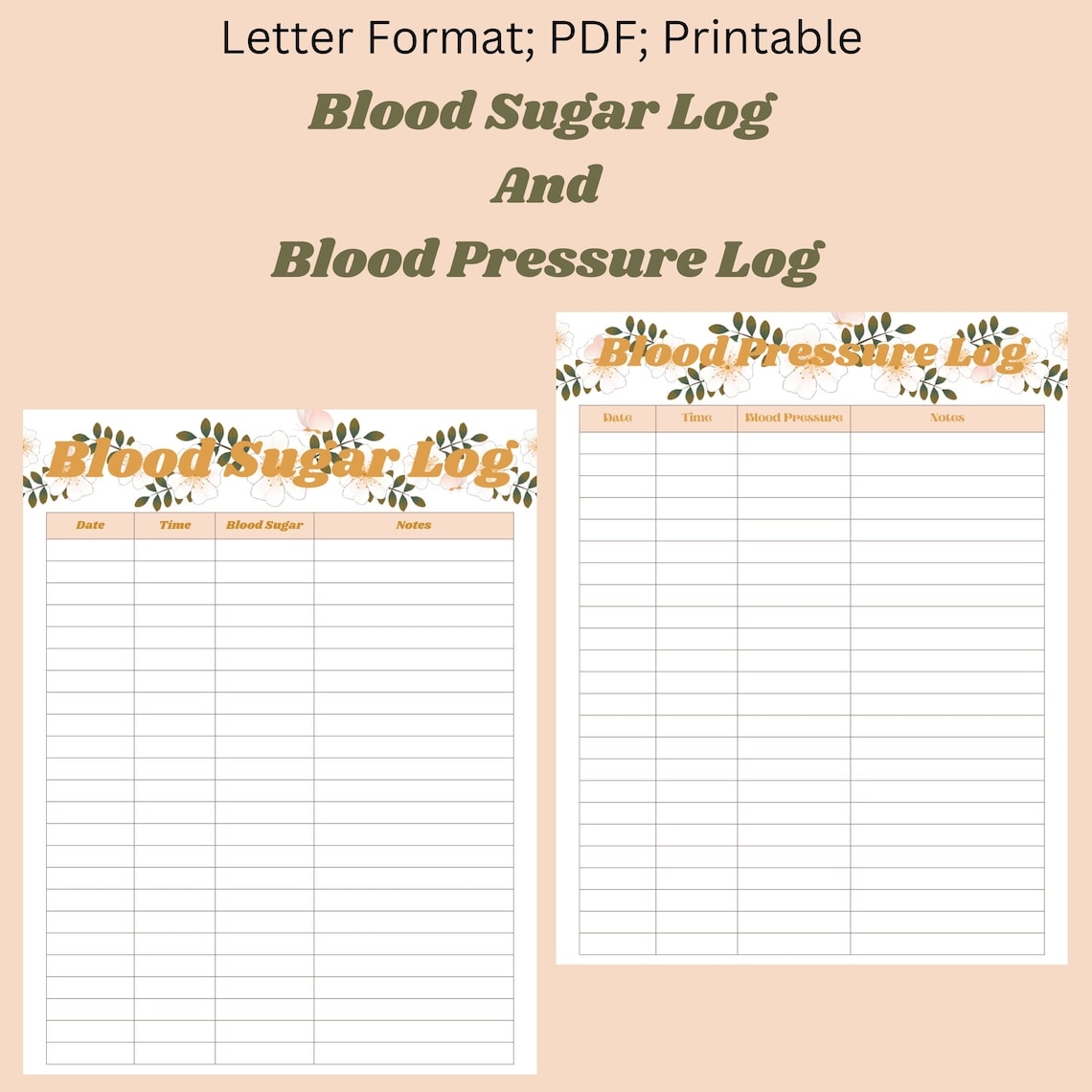 Blood Sugar Log Printable Blood Pressure Log PDF Blood Glucose Tracker