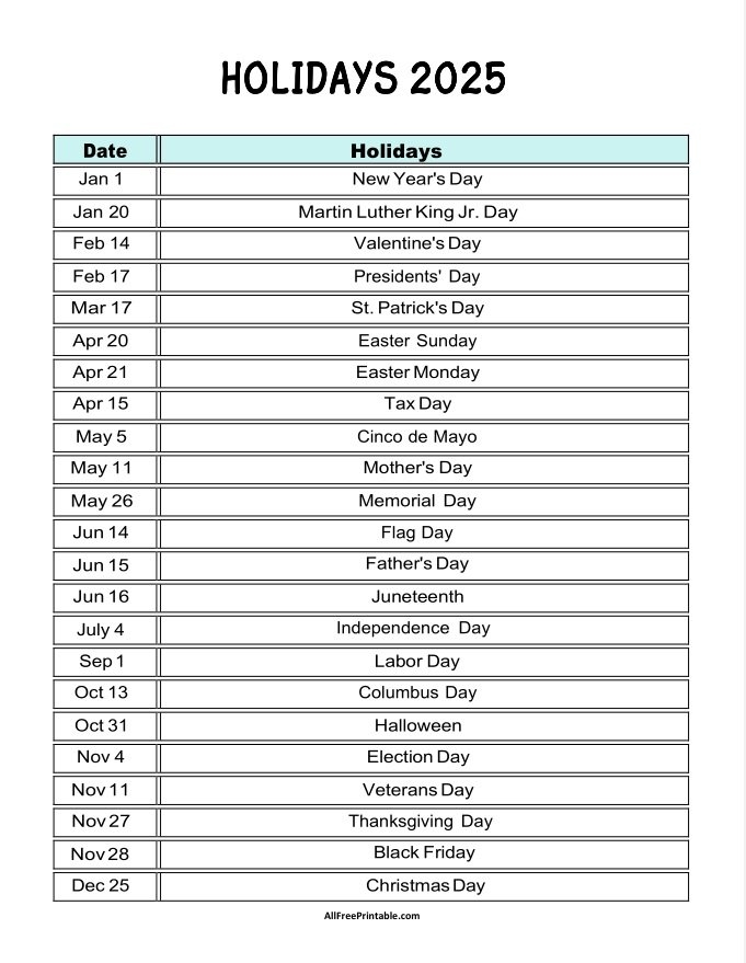 Don’t wait until the last minute to get your hands on a calendar for 2025. Start planning your year ahead and stay on top of your schedule with our free printable calendars with holidays. Download yours today and enjoy a stress-free year of organization and productivity!