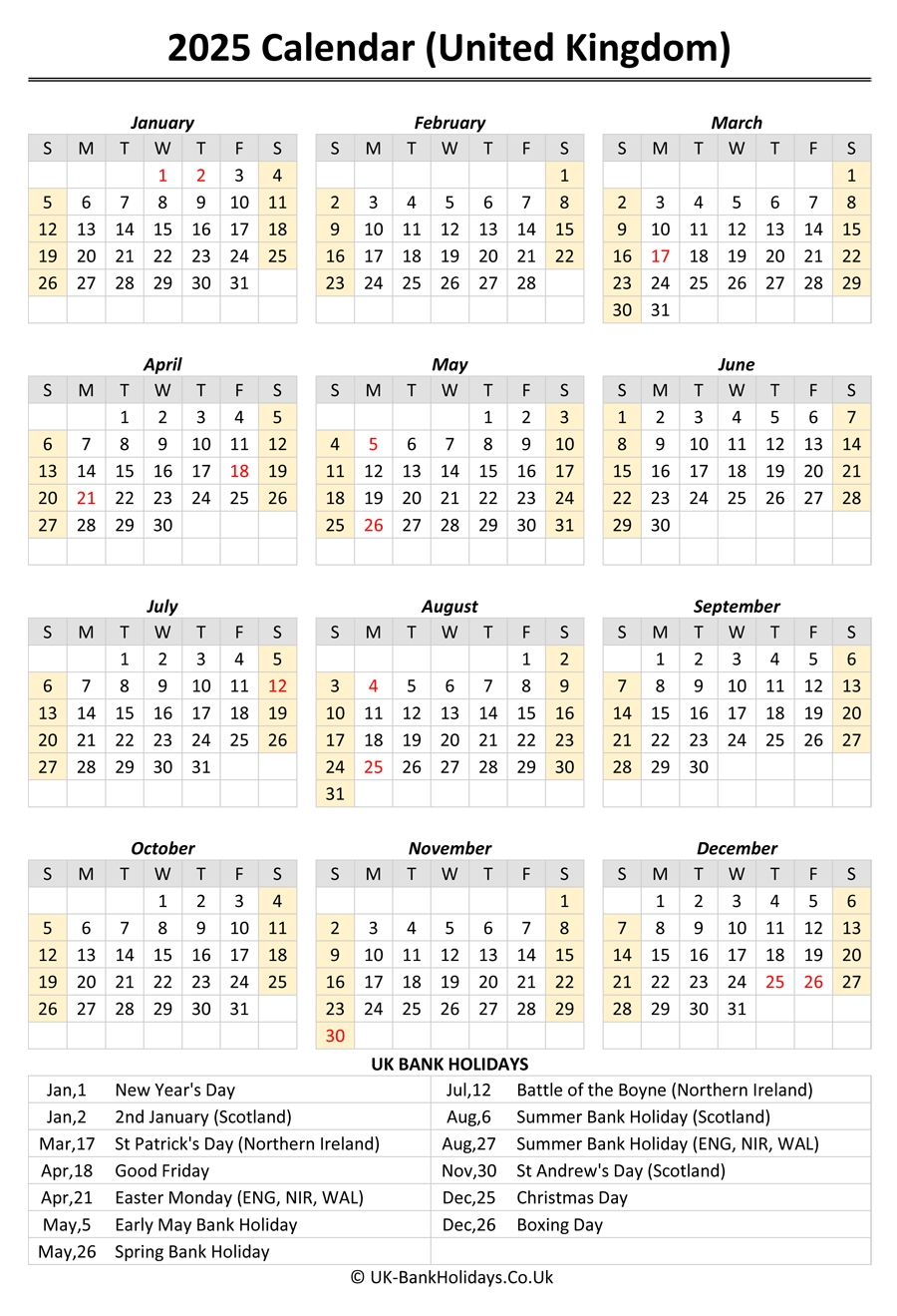 2025 Yearly Calendar With Holidays Free Printable Worksheets Foremost