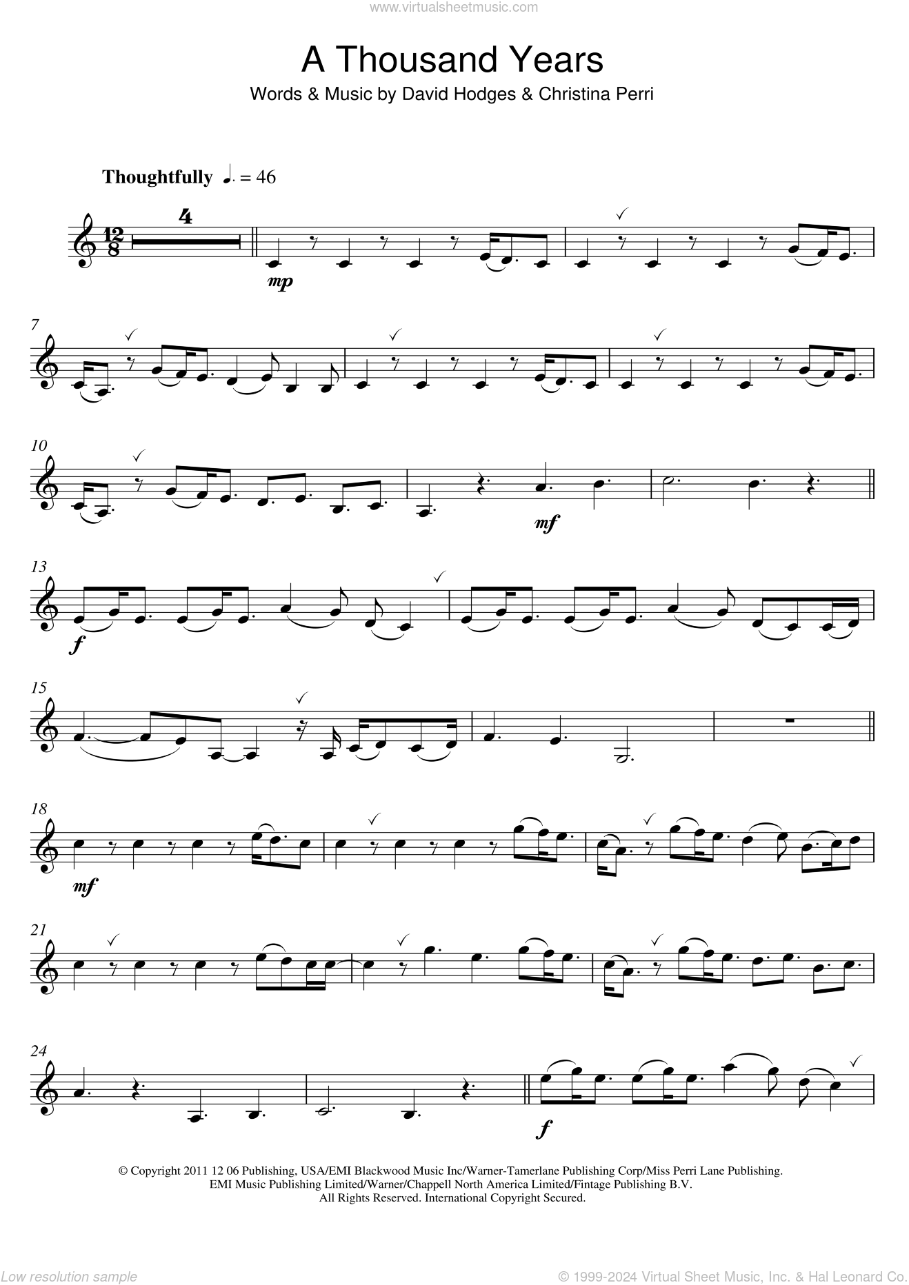 Perri A Thousand Years Sheet Music For Clarinet Solo PDF