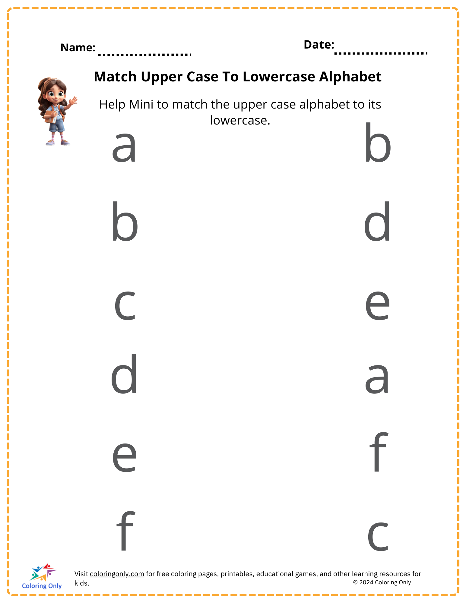Match Upper Case To Lowercase Alphabet Free Printable Worksheet