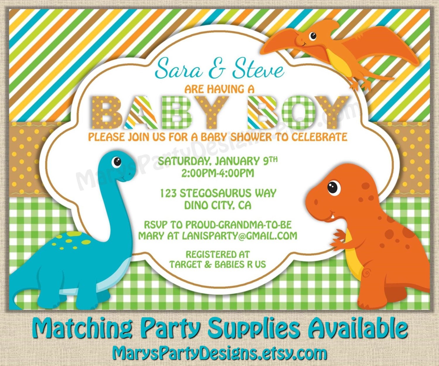 Dinosaur Or Zoo Baby Shower Invitation 5×7 Printable Digital File