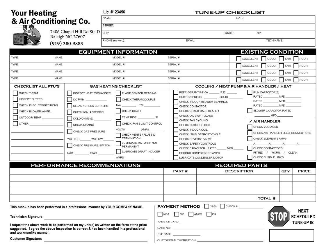 Free Printable Hvac Checklist