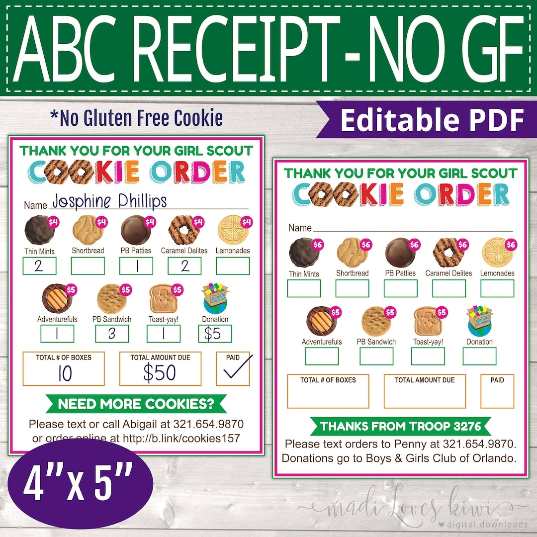 ABC Girl Scout Cookie Order Form receipt 9 Cookies No GF Etsy Girl