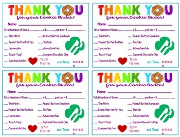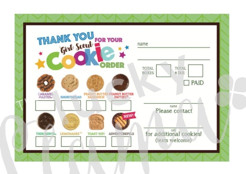 2022 LBB Girl Scout Cookie Thank You Card Printable Order Receipt
