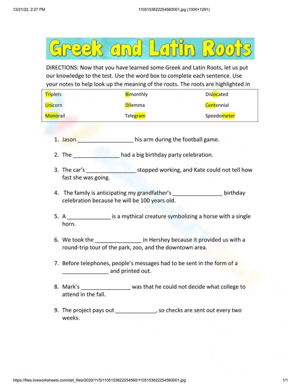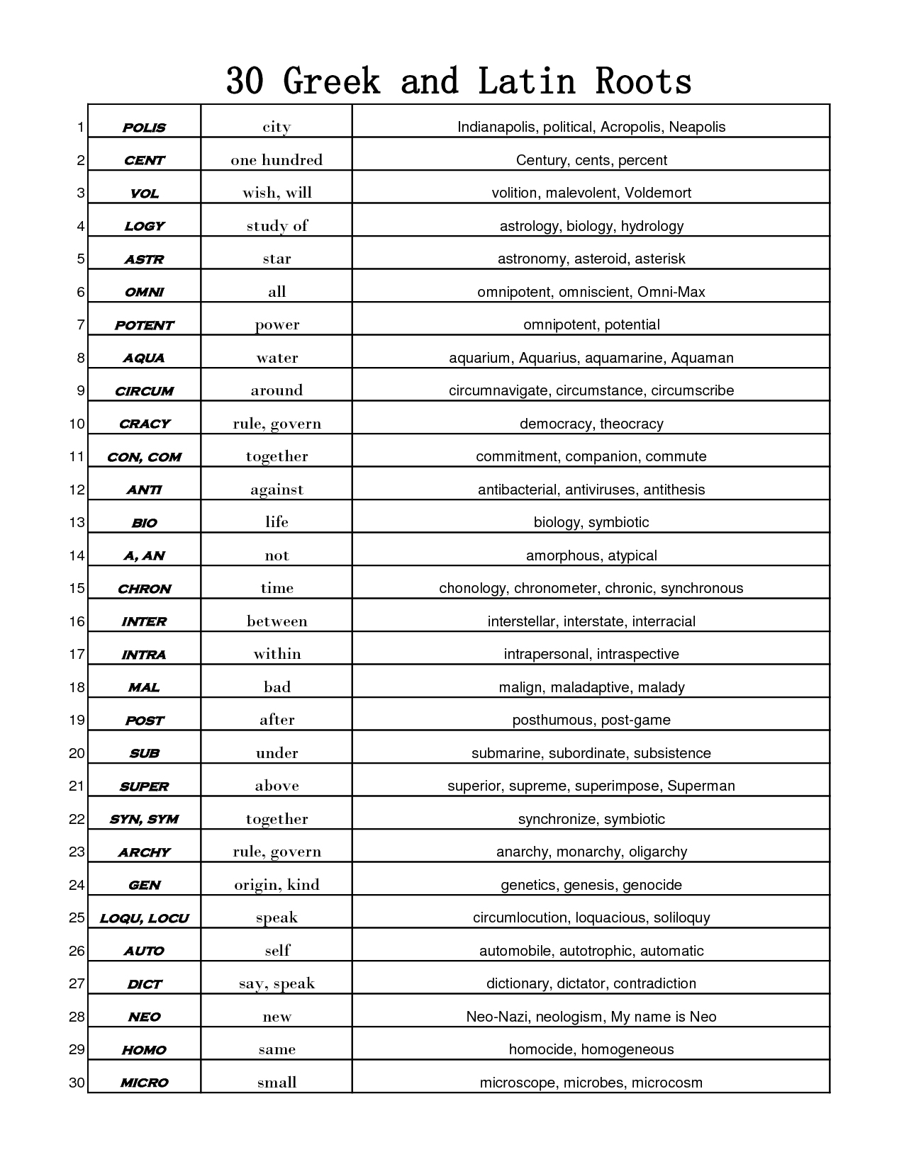 Free Printable Greek And Latin Roots Worksheets For All Ages