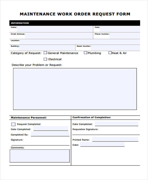 Free Printable Maintenance Work Order Template