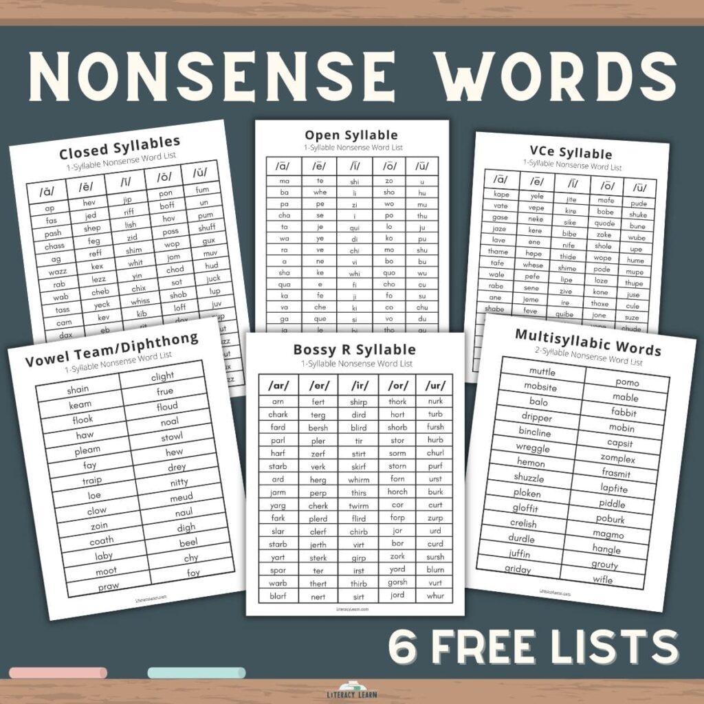 376 Nonsense Words Pseudowords 6 Free Lists Literacy Learn