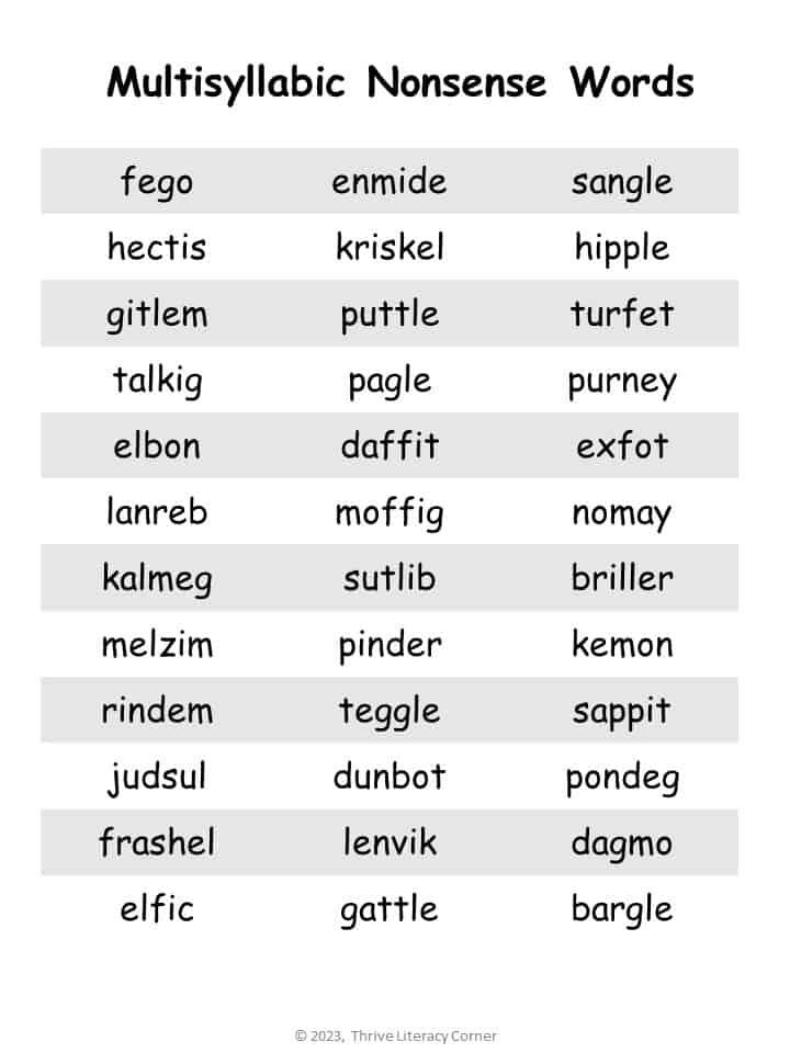 Free Printable Nonsense Words List