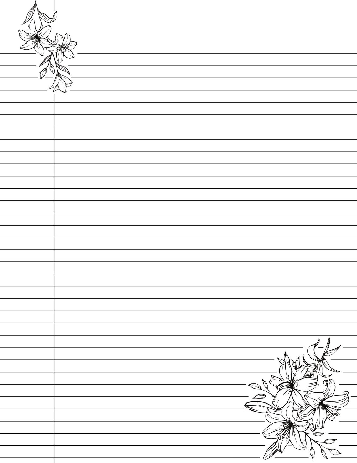 Cute Printable College Ruled Lined Notebook Paper With Margins Floral