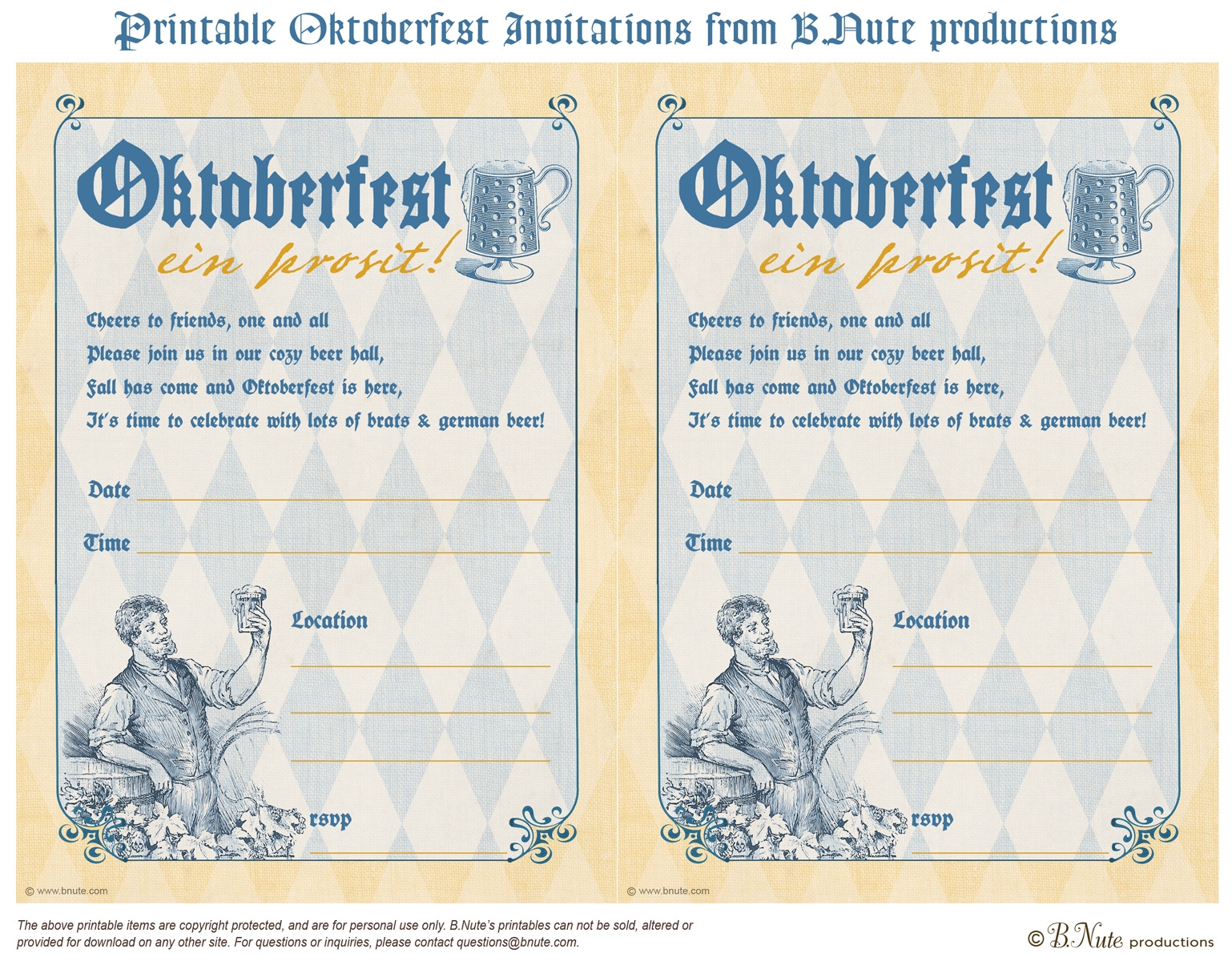 Our free printable Oktoberfest invitations templates are easy to use and perfect for personalizing with your event details. Simply download the template of your choice, fill in the information, and print as many copies as you need. It’s that simple!