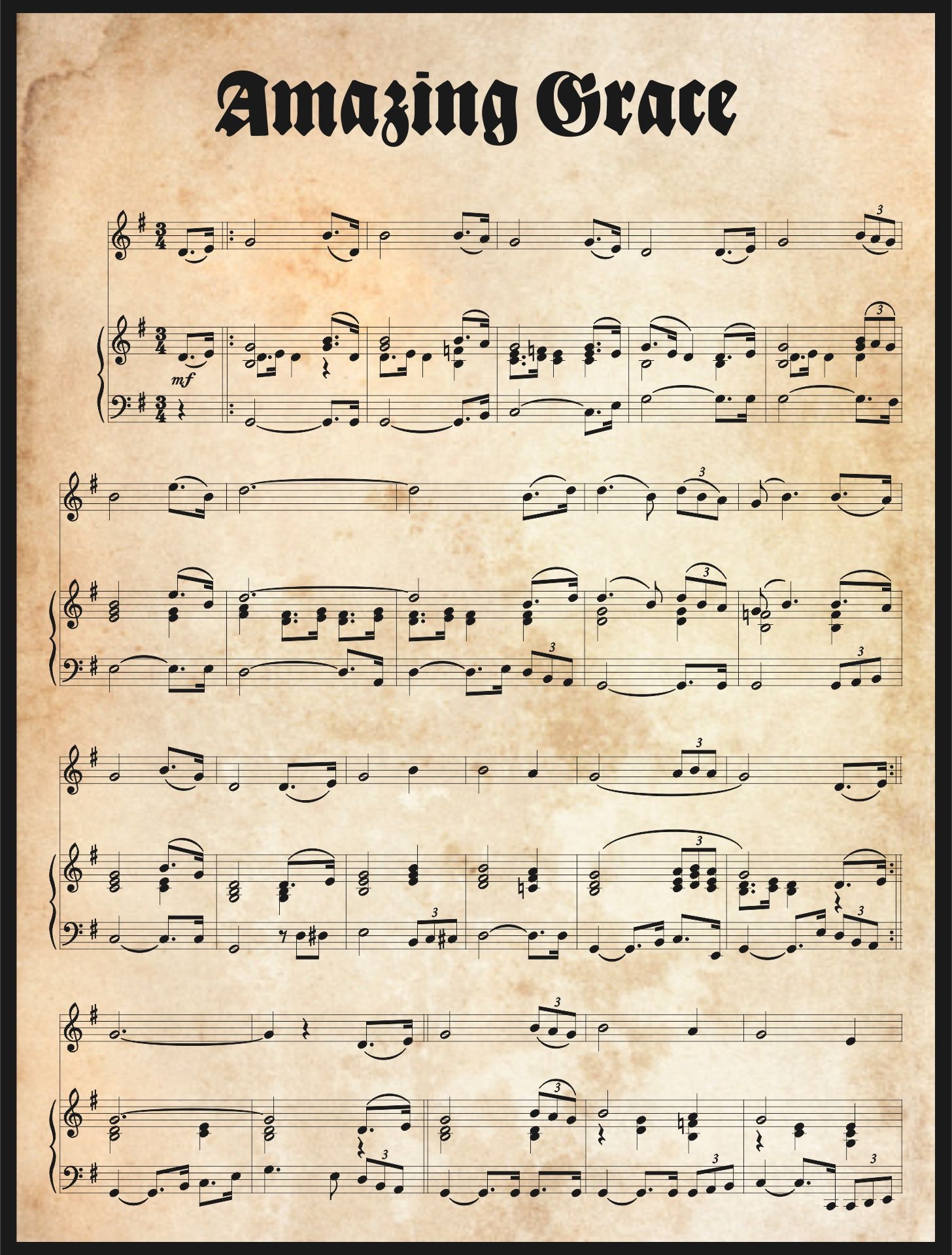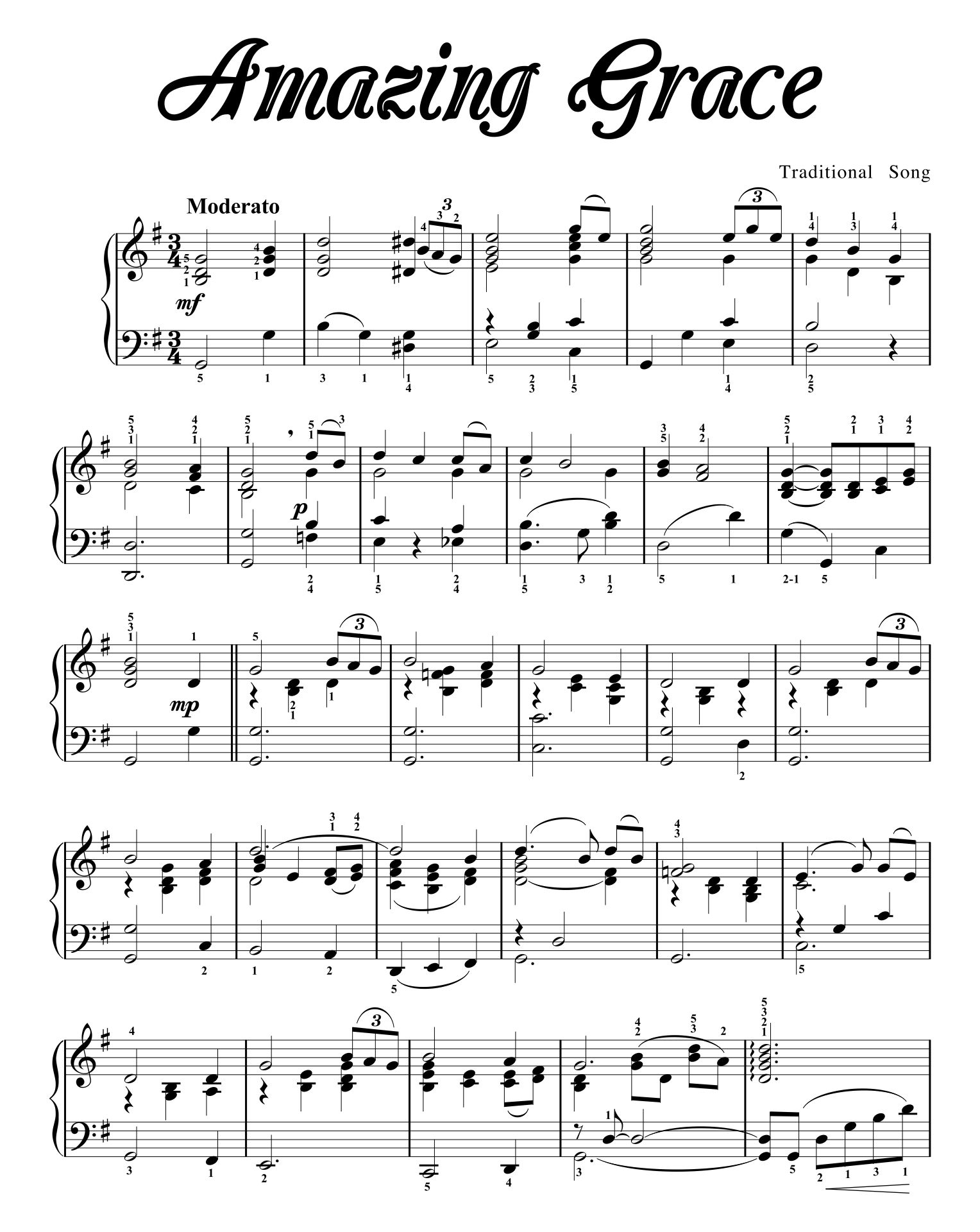 Free Printable Amazing Grace Piano Sheet Music