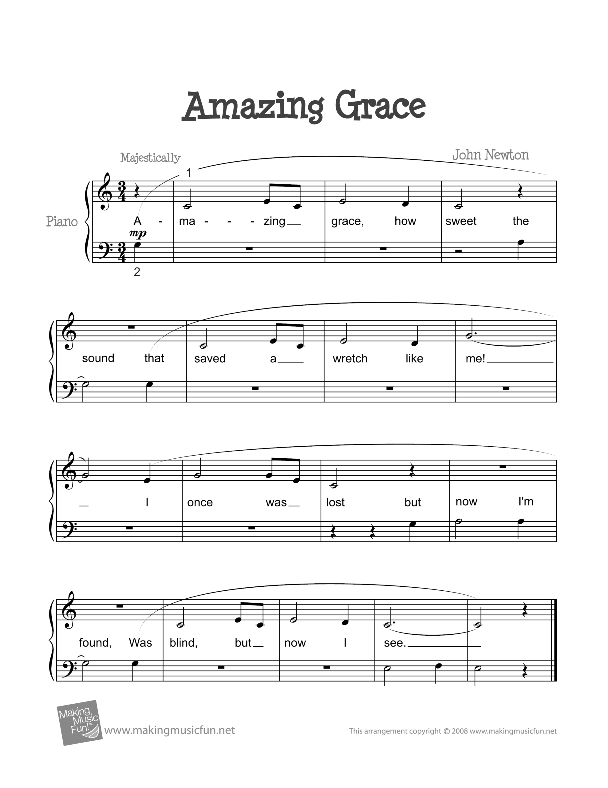 Free Printable Piano Sheet Music For Amazing Grace