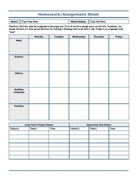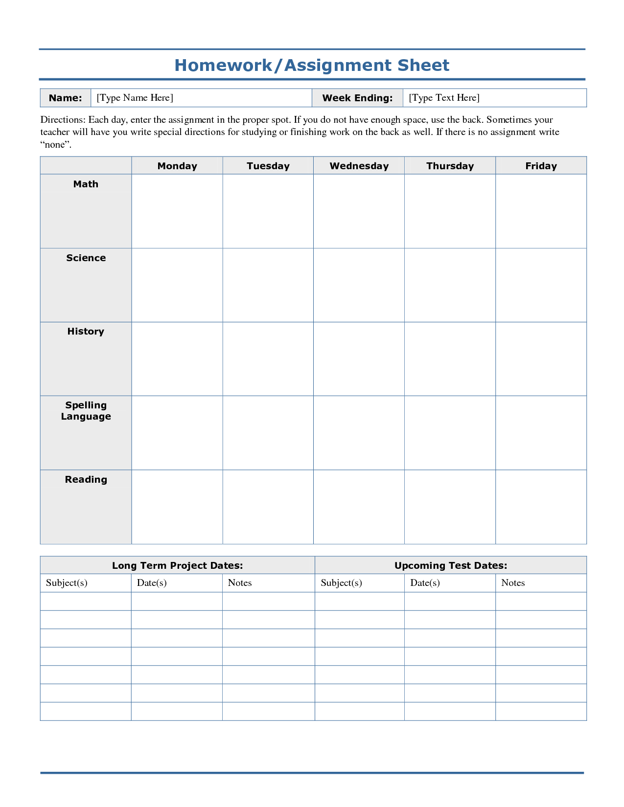 7 Best Images Of Free Printable Assignment Sheets School Assignment