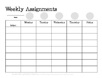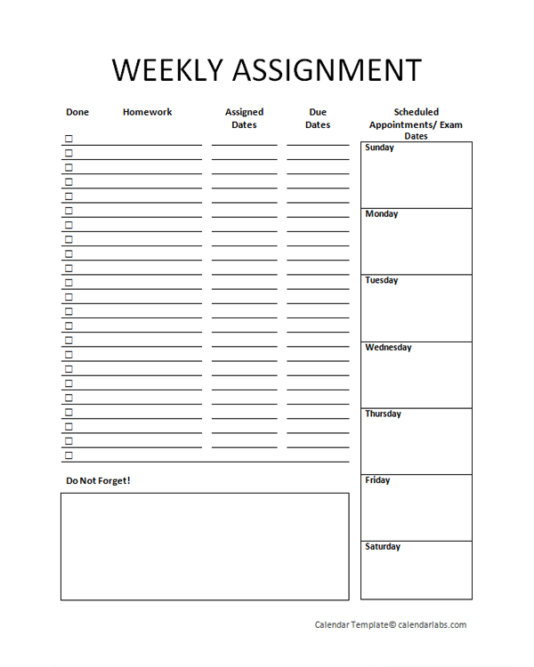 Free Printable Weekly Assignment Sheets Assignment Sheet Weekly