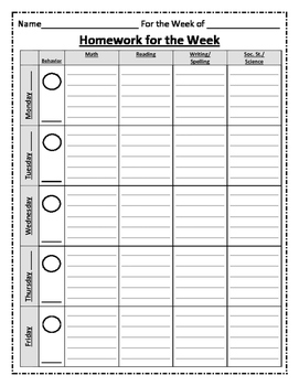 Weekly Homework Assignment Sheet By Casey Benjamin TpT