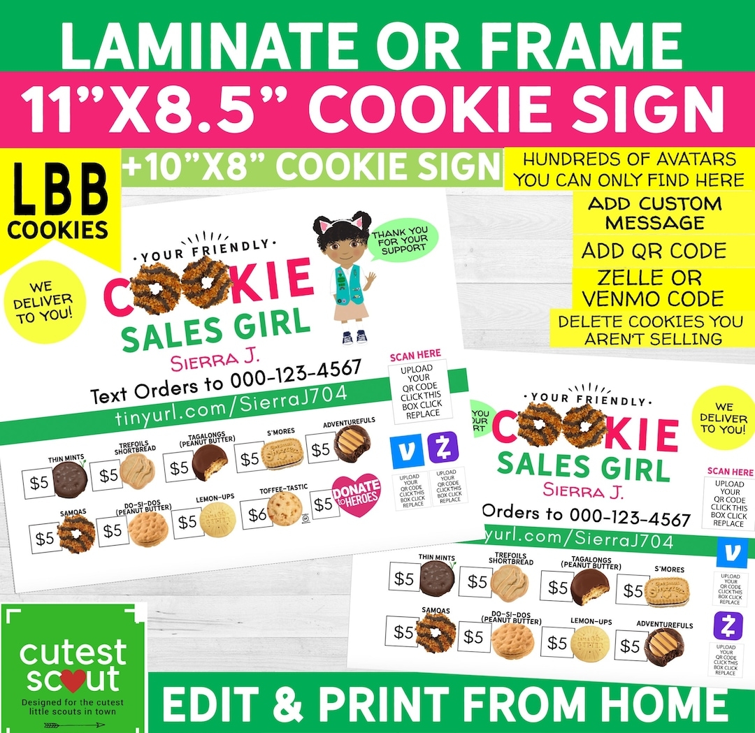 2025 Girl Scout Cookie Printable 11×8 1 2 Signs Add QR Code Contact