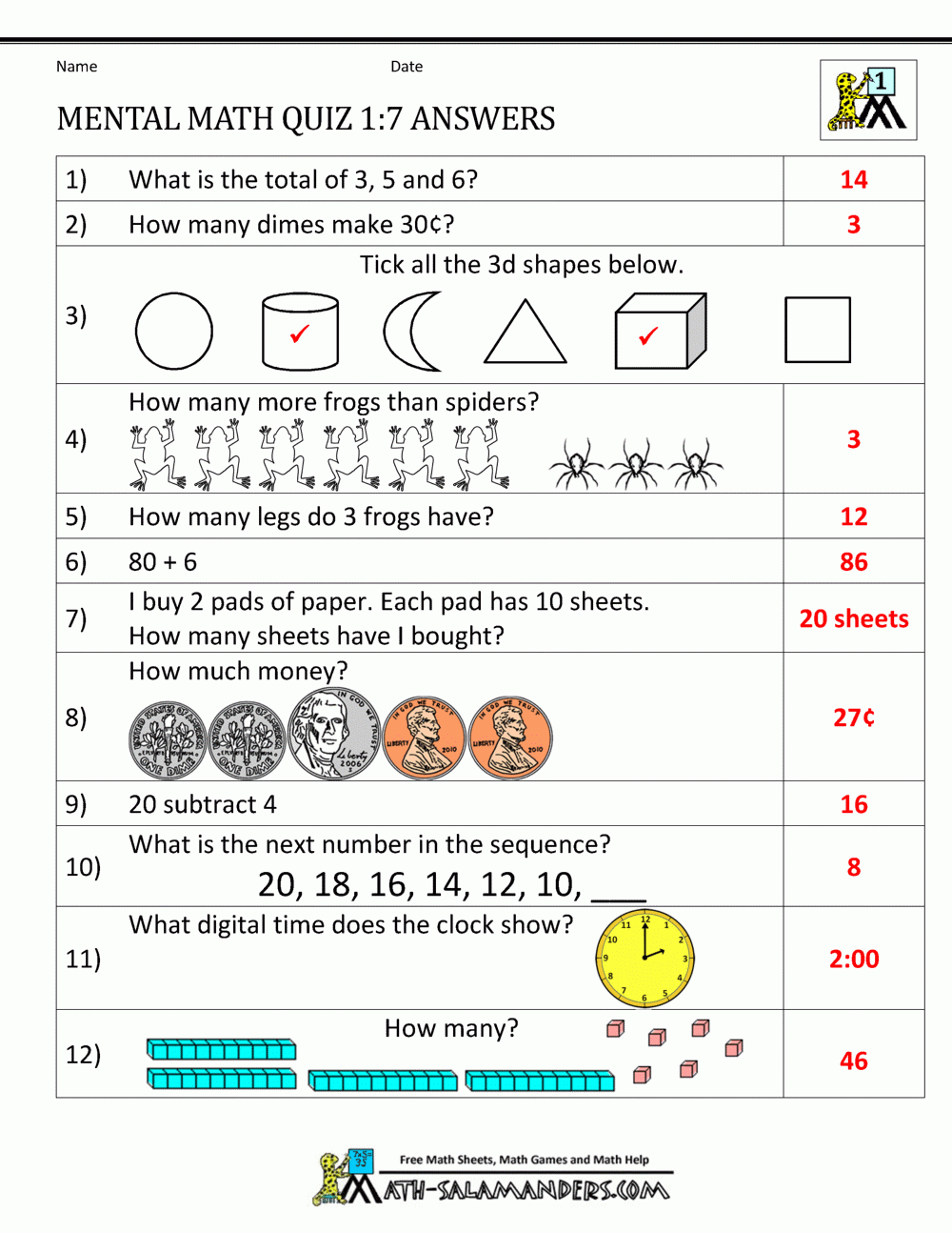 Grade 1 Math Test Printable: A Fun Way to Learn Math