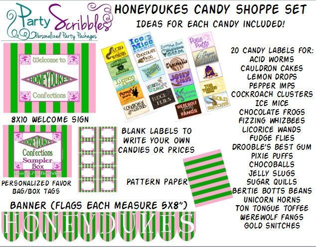 Free Banner And Candy Labels For Honeydukes For Harry Potter Party