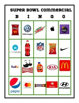 Super Bowl Commercial Bingo By FestivalsnFifth TPT