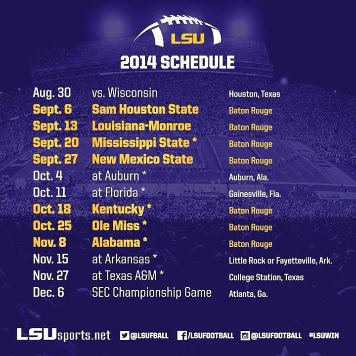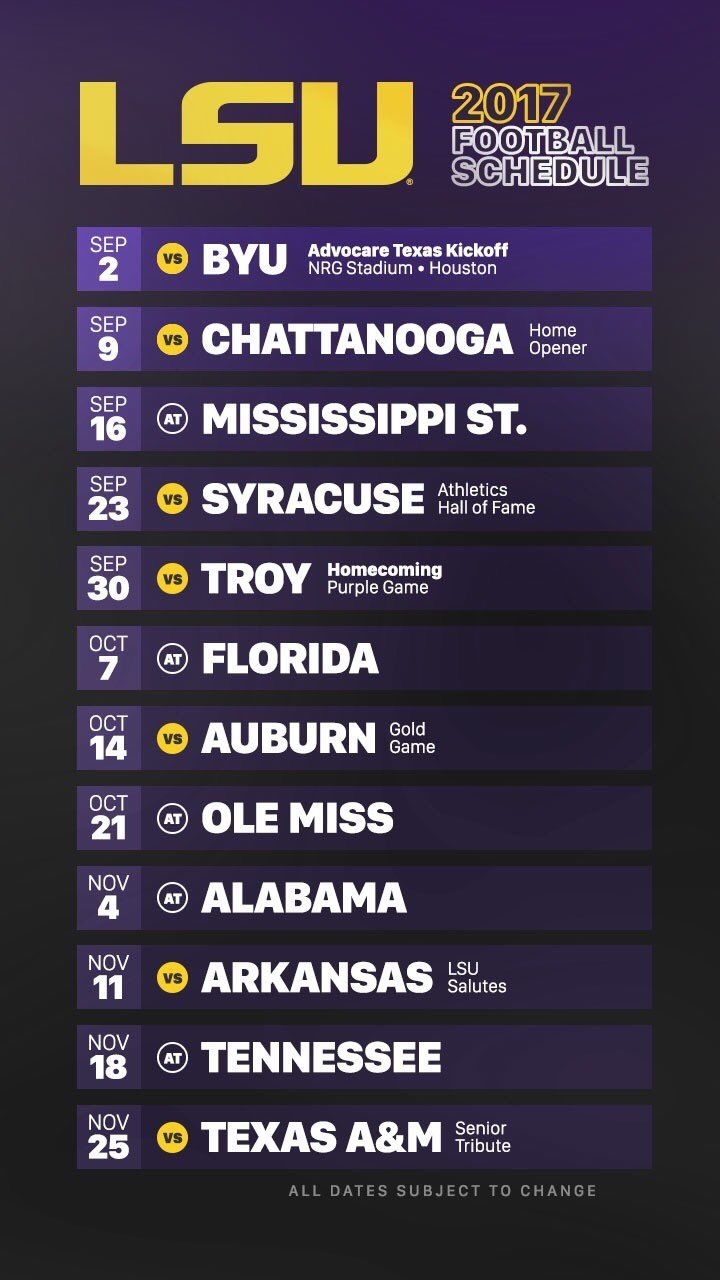 Printable Lsu Football Schedule 2025 Joshua Tyler