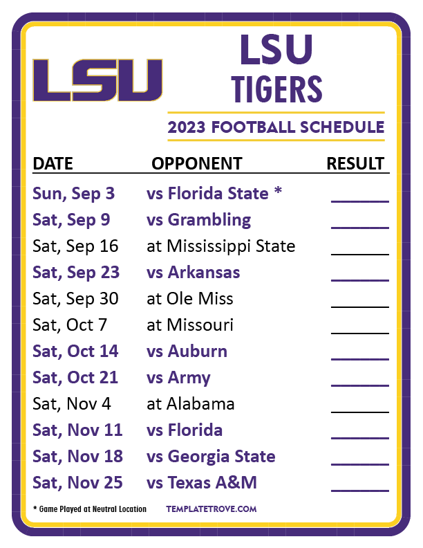 Having a physical copy of the LSU 2025 football schedule allows you to hang it on your fridge, tack it to your bulletin board, or carry it in your planner. It’s a convenient way to stay organized and never miss a game.