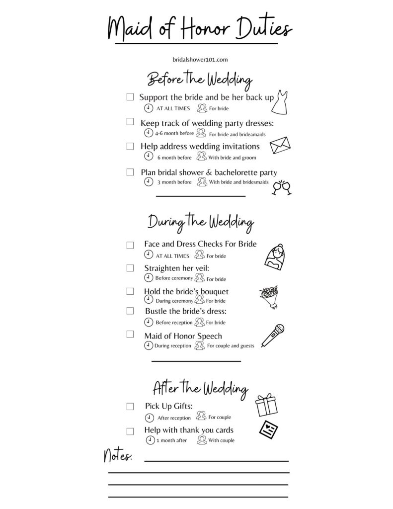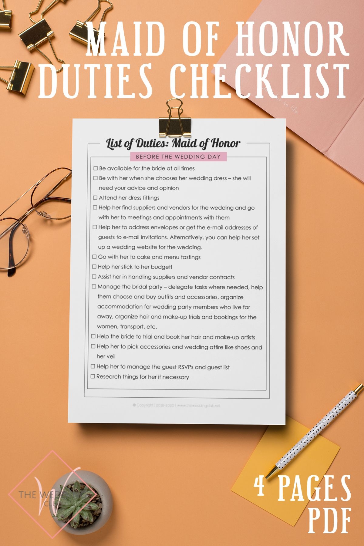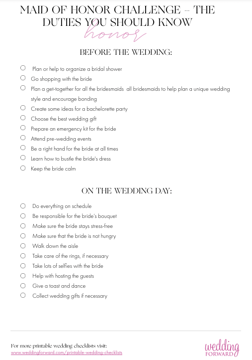 Free Maid Of Honor Duties Checklist Modern MOH Maid Of Honor