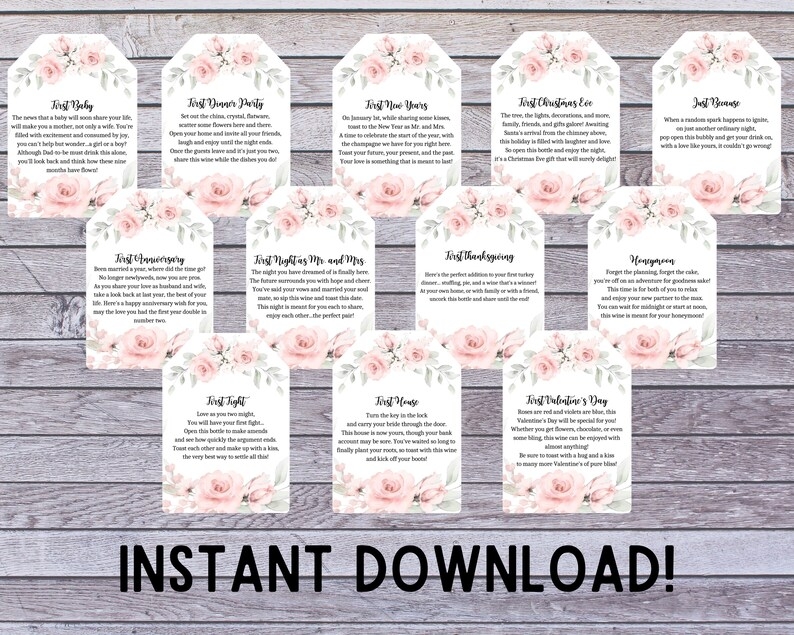 Printable Marriage Milestone Tags A Year Of Firsts Wine Etsy