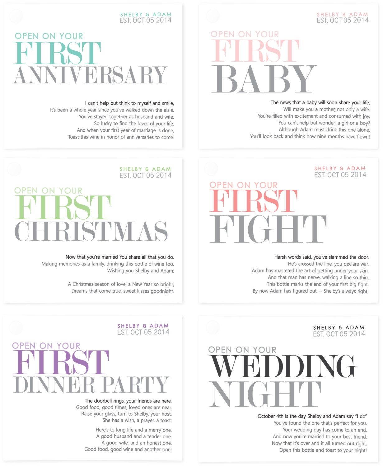 Marriage Firsts Wine Labels Milestones Married Custom Set Of 6