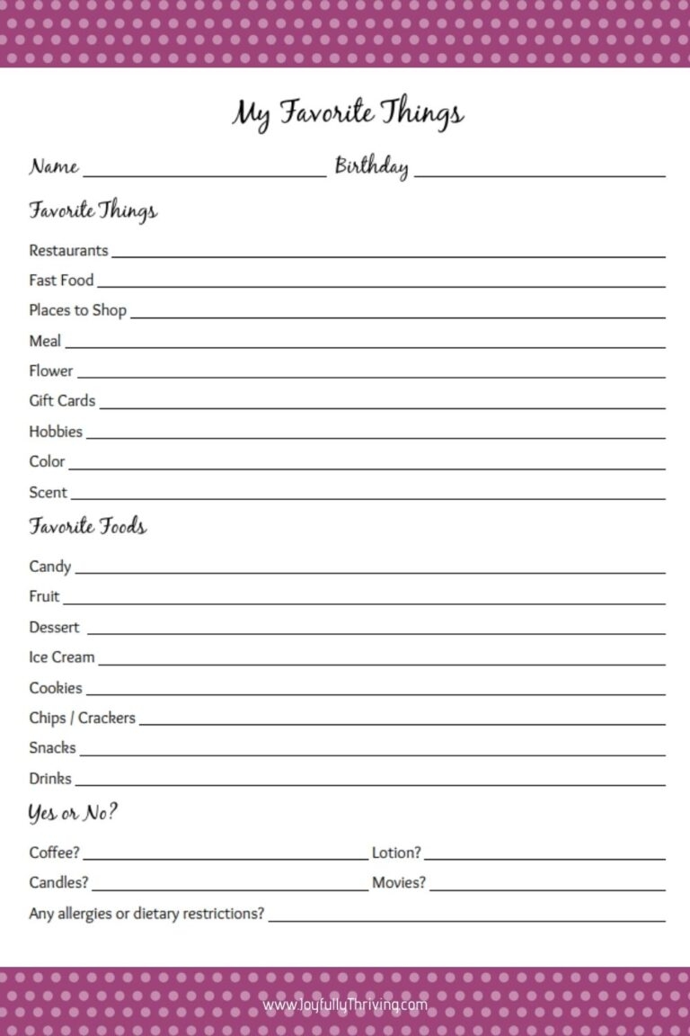 So, if you’re looking for a fun and easy way to keep track of your favorite things, consider using a My Favorite Things List Printable. It’s a simple yet effective tool that can bring a little more joy and organization into your life.
