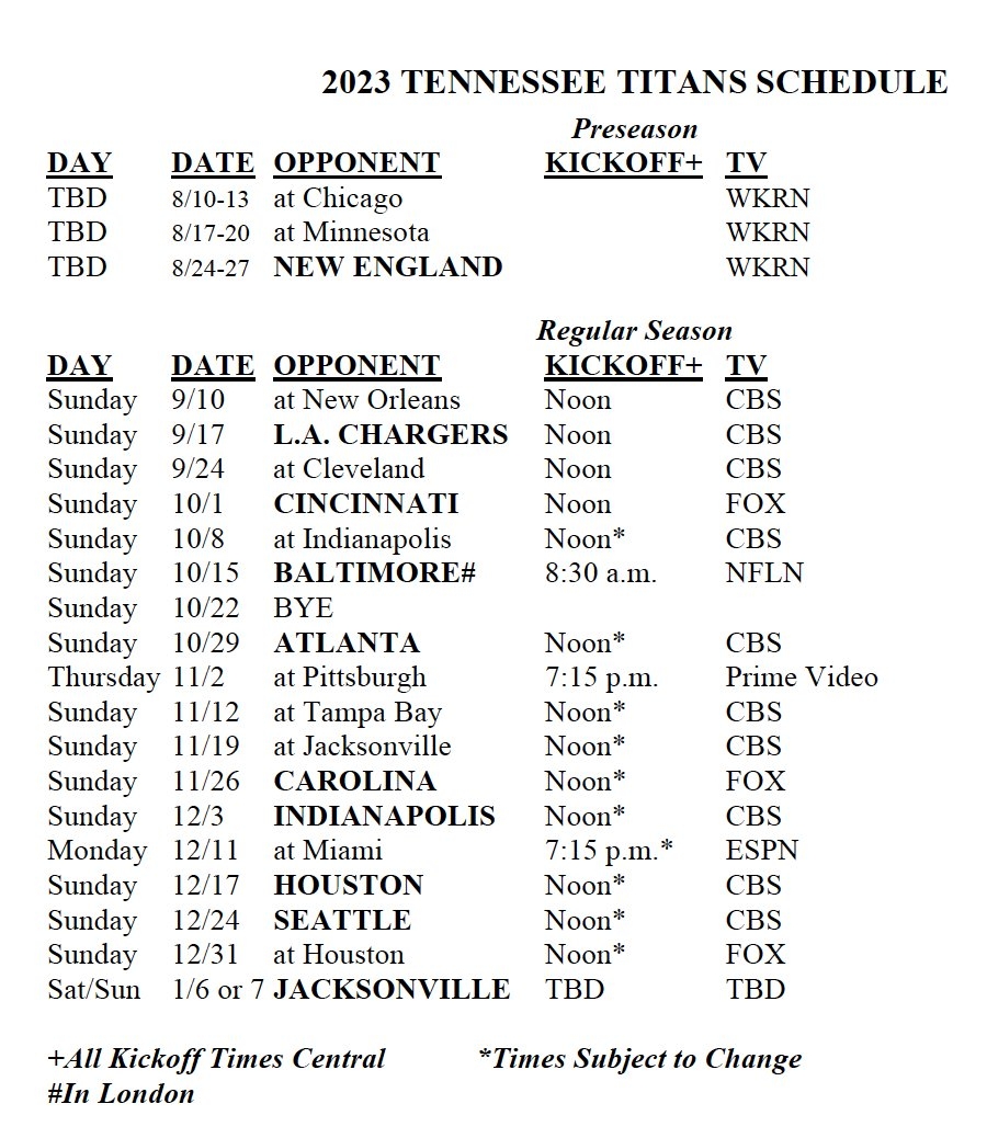 Tennessee Titans Football Schedule 2025 Nfl Tobias M Kruse