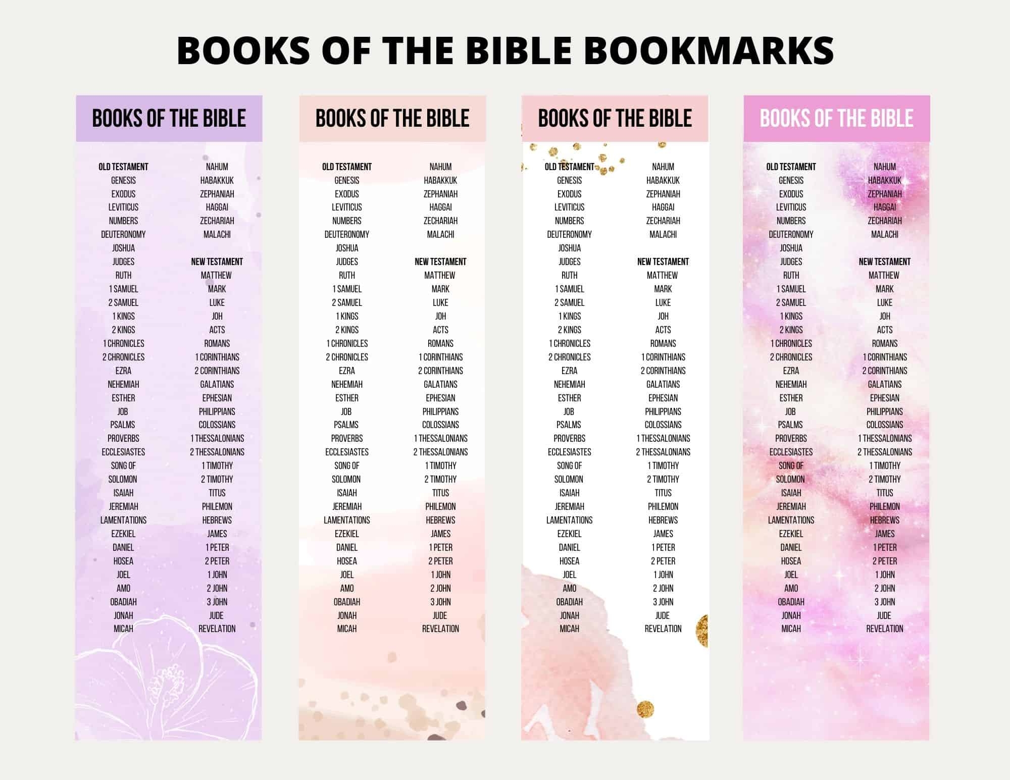 Books Of The Bible Bookmark Printable