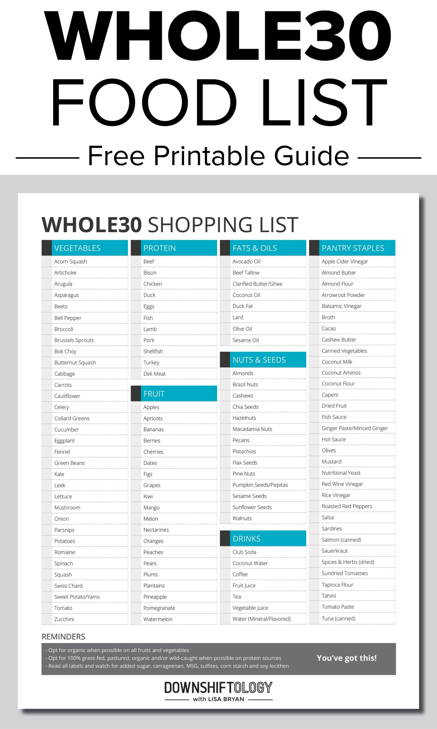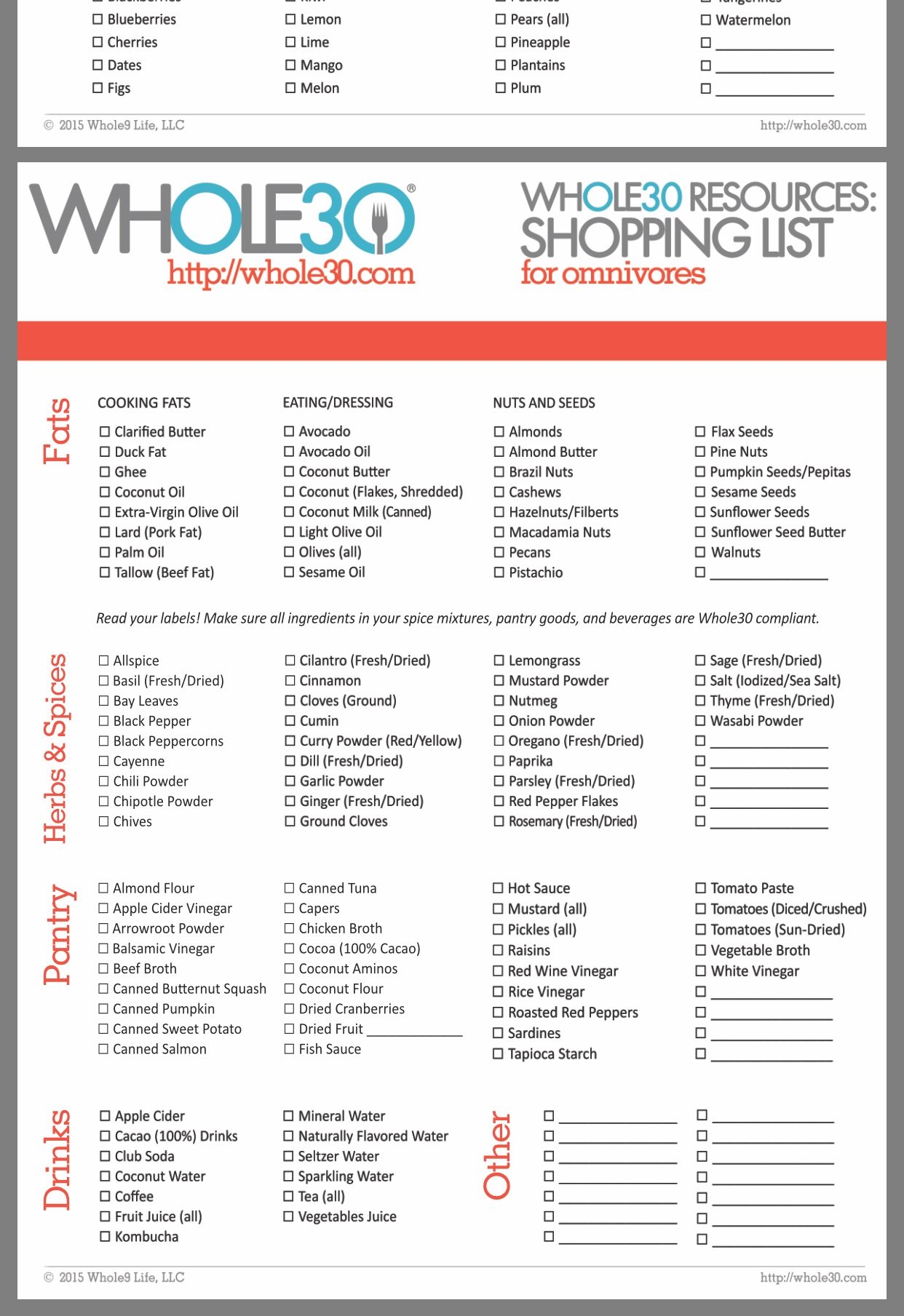 Whole30 Grocery Shopping Food List Printable Whole30 Food List