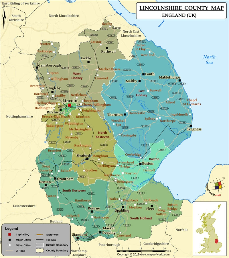 Lincolnshire County Map Map Of Lincolnshire County England UK